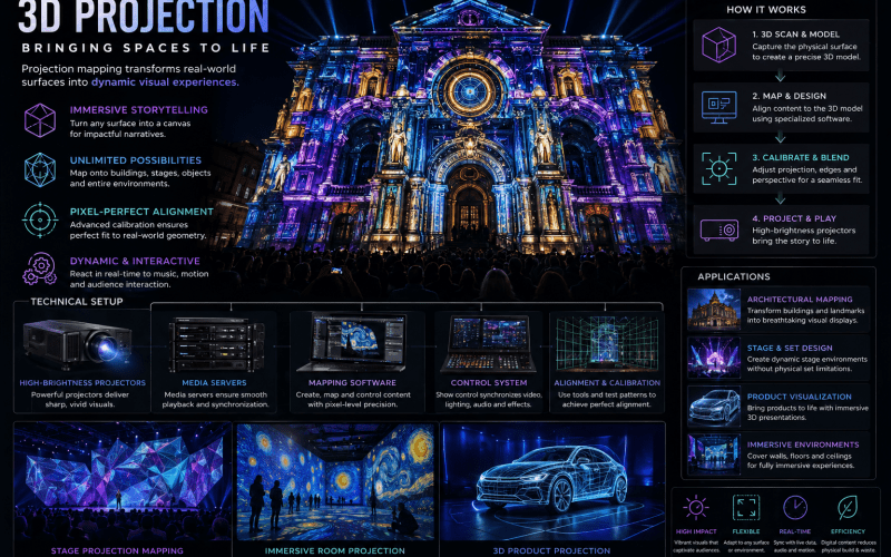 Projection mapping is an artistic function. They are beautiful creations that create a unique perspective on common objects if done right. Please find below some of our favourites. For technology information, please check out more for projection mapping here. To find the latest news and case studies 👉 click here