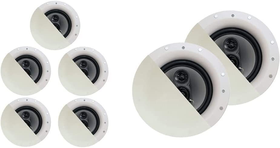 Glad I took the chance on these! The reviews are true about this one!I prewired my new construction home for 14 speakers. I moved in December and since then have been doing tons of research on in-wall / in-ceiling speakers. I was ready to spend about 1.5-2k on more commonly known brand name models (Polk, Boston acoustics, Klipsch, etc..). Then I came across these on Amazon and thought i would gamble with a set of 5 to see how they would sound in my living room. I have 10ft ceilings so i went with 8′ 3-way speakers while using 16 guage speaker wire. Needless to say, this is one of the best, and a bit lucky purchases i have made in a while.My only gripe is installing the cover grill once you have secured the speaker to the wall. The first speaker took me about 1 hour to install, but the rest went by much easier once I got better with the drywall saw and knew the exact size the hole needed to be. Reinstalling the grill cover was a challenge mainly due to the fact that after you have mounted the speaker to the ceiling the plastic frame may have warped ever so slightly. If your hole is too snug it will warp the frame just enough to make the grill hard to fit. So, I grabbed a pair of needle nose pliers and made a crease on the lip of the grill cover (the part that’s folded up that wedges into the housing). I just grabbed about 1/4 inch of the lip and turned about 90 degrees and repeated on 4 sides. this reduces the circumference by some millimeters to make the grill fit in a little easier. Be careful not to twist too much.After install was complete i hooked up my speakers to my onkyo receiver and played some tunes on stereo mode so i can stand below each speaker and was immediately impressed. Good bass, mids and highs. I added a 10″ sub to give the movie effects that added boom factor.Im looking forward to buying the other 9 speakers i need at the fraction of the price of the higher end brands. I will save about 1.5k with these speakers!