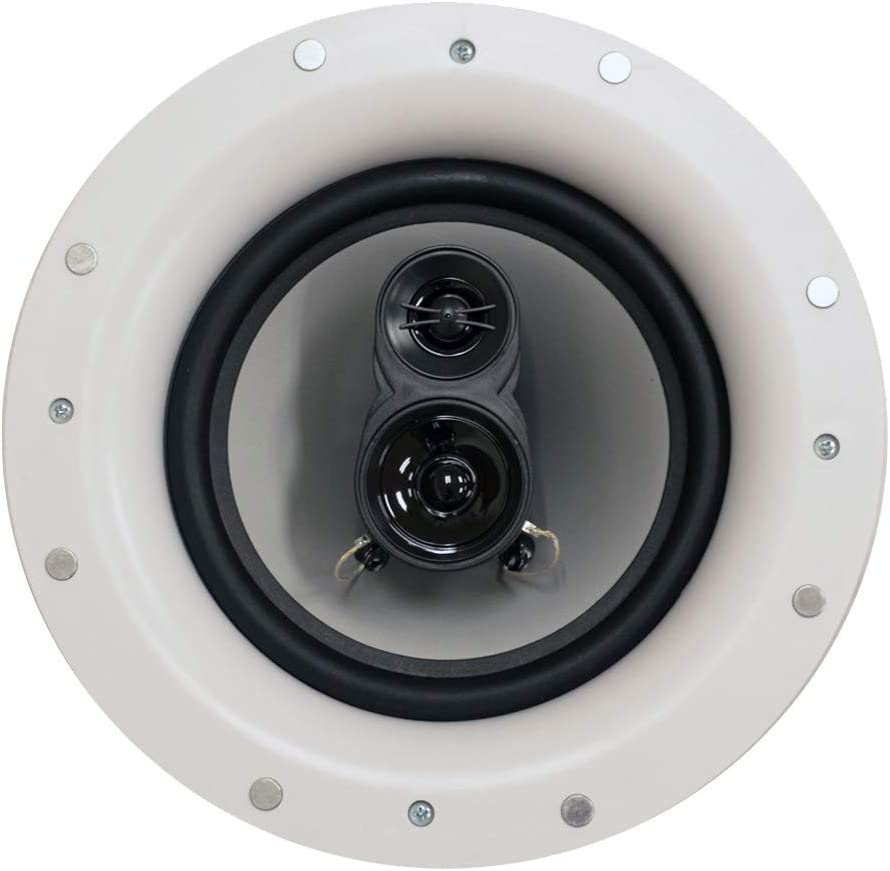 Each speaker features a unique pressure lock mounting system that clamps tightly to drywall, and fits round speaker holes the size of 9.49 inches with a mounting depth of 3.7 inches. The spring loaded connections, ABS housings, and grills can be painted to match your decor.
