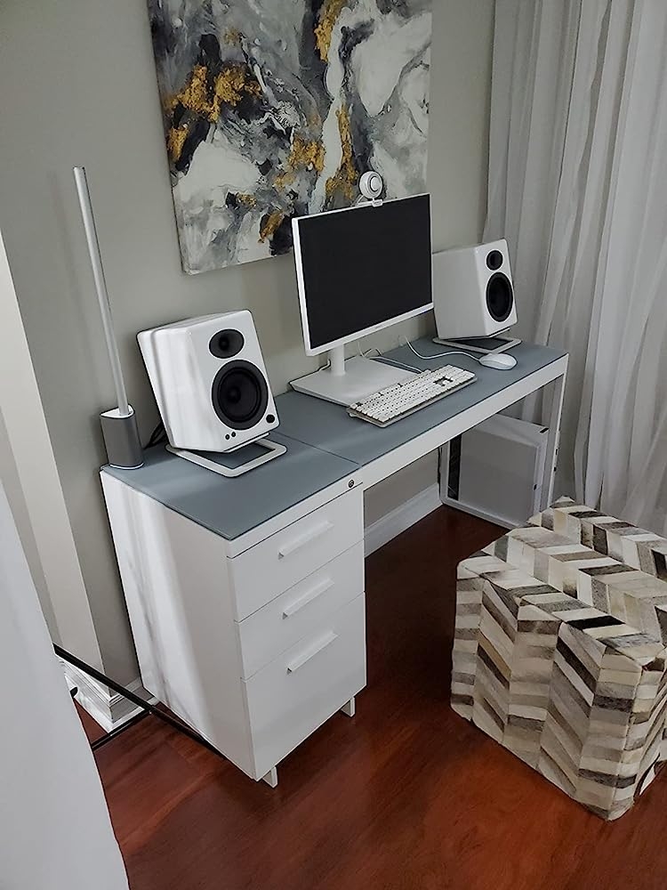 Now that I’m working from home, I wanted some top-notch speakers for my desk. I did quite a bit of research and after finding the A5s coming out on top on site after site I decided to go with them.First impressions:Wow these are HEAVY, which clued me in on their quality. Setup was a breeze, everything was included. I read a few reviews saying they needed a little time to “break in” a bit and indeed the first day they were not quite as impressive as I had hoped. I made sure to give each song a little extra volume than what I’d usually have it at. I was also worried that I should have got the subwoofer too because the bass was not as punchy as I’d hoped.The next day:The next morning I put on a song and it was clear the speakers were now READY. Such rich, full and clear sound from these speakers! No headphones can match these bad boys- the music is felt through your whole body and it’s like a concert right in front of you. That punch from the bass that was missing was now present. Simply put these are the best speakers I’ve ever owned and I didn’t expect to have better sound than my car stereo puts out. So cool!Pros+ Warm, rich and clear sound and you’ll really *feel* the music+ Look really cool and modern/futuristic+ Very easy setup, everything included+ Don’t need a receiver or amplifier to get LOUD, distortion-free sound of these.Cons- I’d still recommend a subwoofer but probably just something basic to gently compliment these. It’s hard to fault here because they are not really meant to be an all-in-one solution given their size but they are SO CLOSE to being that.- The shiny-ness of them kind of makes them look like they’re plastic/cheap at a glance. I wish they were less glossy. Very minor issue though, purely aesthetic.Final Verdict:I’m very happy with these speakers. I will be recommending them to everyone looking for speakers for their home or office and I’ll also recommend an entry-level subwoofer to go with them just for a little extra bass.