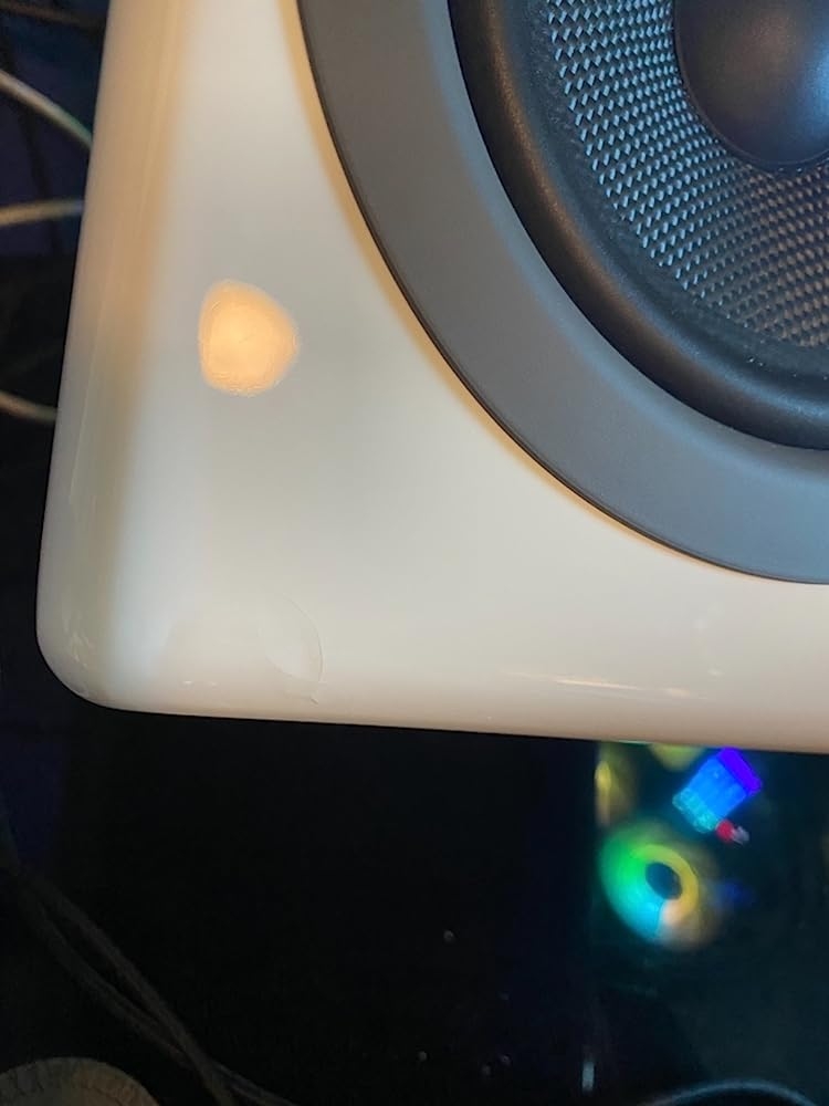I just installed these speakers today. They came packed in a nest of boxes in styrofoam and wrapped in nice scratch protecting bags. Unfortunately, the bags were a miscalculation on the part of the manufacturer. The bags have a hard plastic closure mechanism (pictured) and either during packing or transit this hard plastic bit shifted and ended up between a speaker edge and the styrofoam. This caused cracked dent and an additional dent on the right hand speaker (pictured). Neither the sound quality nor speaker itself seems otherwise damaged.I really don’t want a cracked dent on my speaker….but I also really don’t want to try to repack these things into all the boxes they came nested in, drive miles into town, drop the speakers off at the UPS store, and then wait weeks for replacements to cone… it’s hot out and I’m lazy. So I’m not returning them…however, I’m pretty GD disappointed that for $500 I’d be put in a situation, because of the manufacturer’s packing fault, that would cause me to have to go through a huge amount of effort or live with a cracked brand new speaker. I shouldn’t have to spend hours of my time and wait for days just to use a product I’ve already paid and waited for.The stupid thing is…these bags are essentially just dust covers. There is literally zero reason for them to have a draw string with a large hard plastic closure. It 100% defeats the purpose of the bag. So manufacturer, if you read this, please contact your packaging engineer and ask them to reconsider the method of closing those bags. A simple cloth drawstring without the hard plastic bit would serve just as well, save you money (because those closures are for sure not zero cost), and prevent damage to the product in transit.Because the damage is due to manufacturer’s original packaging, I can’t give this product the 5-stars I would have otherwise given it. I’m going with 3-stars because they sound nice and work well, but the rage I feel over this stupid cracked dent makes me want to 1-star them, just so you’re aware.