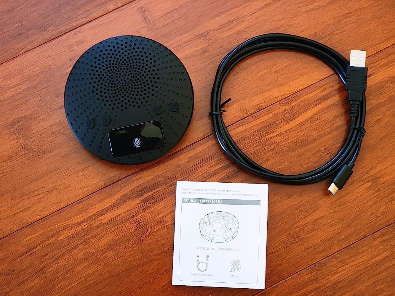 The size of this conference speaker is about a bagel. Setting it up was very simple and straight forward. The mic is sensitive and better than my old mic this one to replace. I don’t need to lean forward to the speak. According to my co-workers, the sound they received was good. Initially, it had some problems to record system sound. It was resolved by selecting a right device. When connected, this speaker shows up as 2 devices (see the picture). The one for mic is CF10 Hands-Free AG Audio. Anyway, it works really good now. Overall, I like this little device. It’s a great help for work-from-home situation.