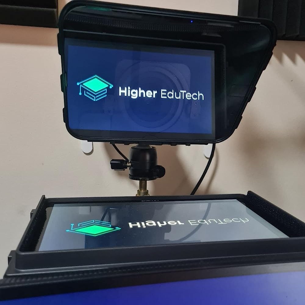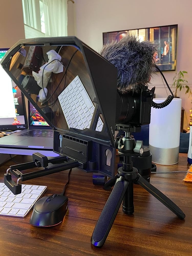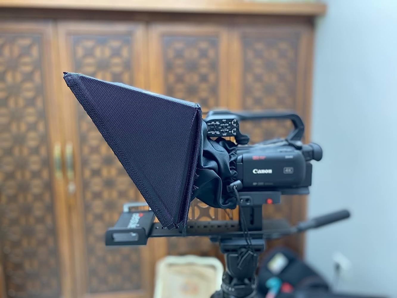 I got this wonderful teleprompter for my television programs. It has excellent quality with hig-grade mirror for spotless reflection. It is very easy to mount on a camera. The image quality of the video through the glass is crystal clear. With app that is provided by the company, it is very easy to use and the letters are large enough to read. It comes with a beautiful quality case and can be carried around with pride. I highly recommend this teleprompter.Rev. Dr. Joseph Kishore