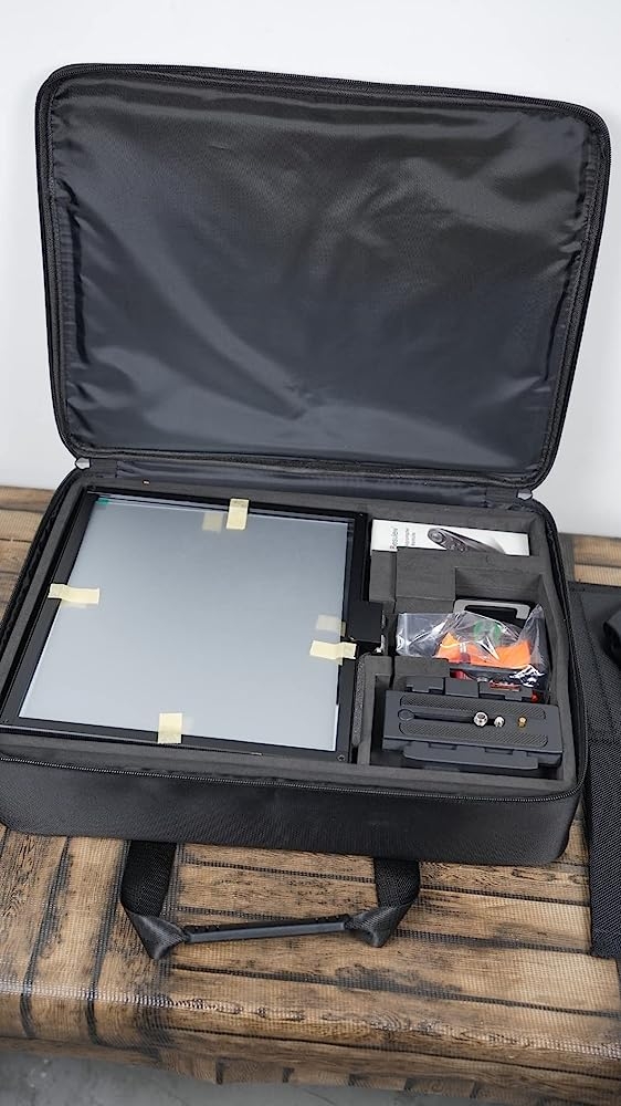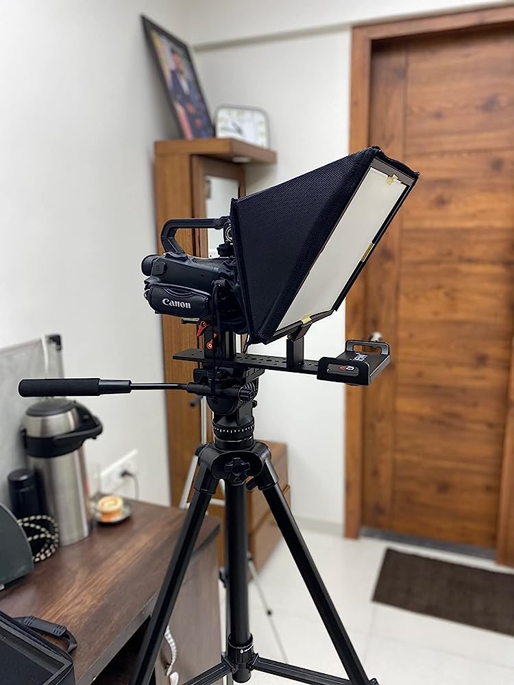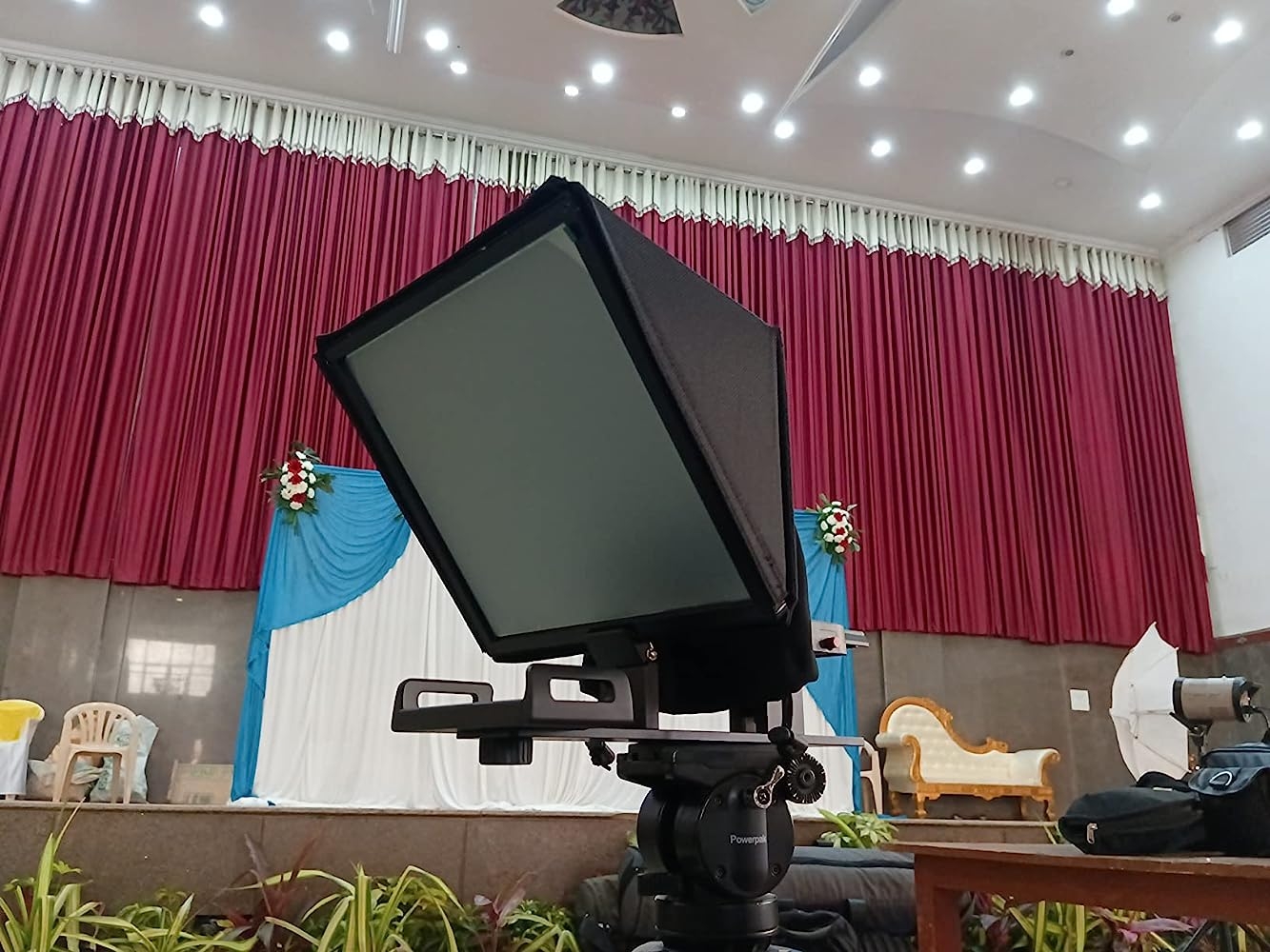 A right teleprompter for my corporate shoots.. Received with a carry case.Compatible for various size displays