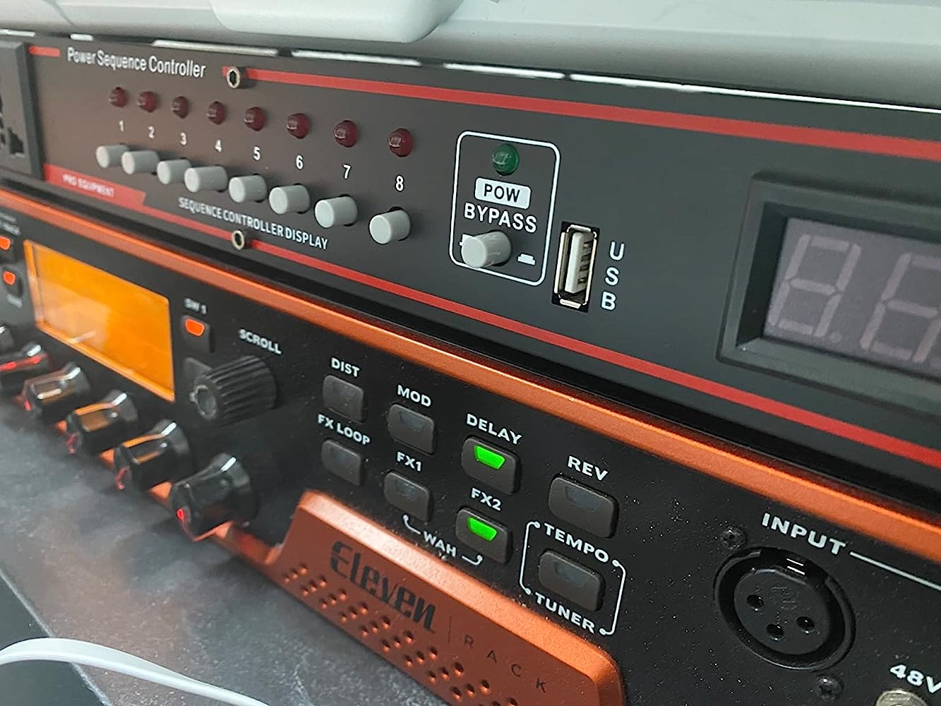 This is what I need a red power distribution rack , works great for cover up messy power cables. Each individual output come with dedicated control switch. And even a usb power outlet. It also help to reduced the electric noise from large electronic equipment.