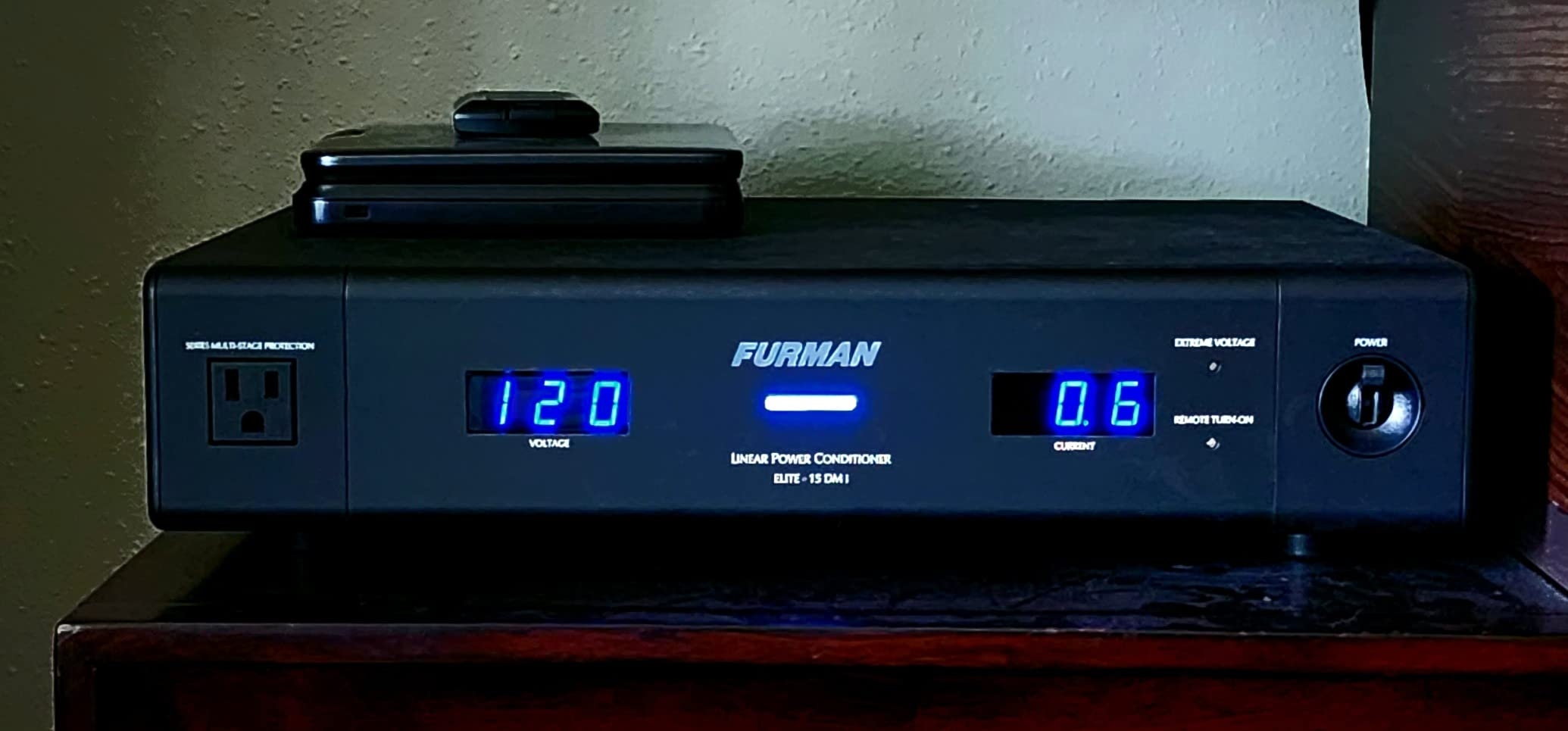 I was looking at this unit and the Panamax M5400-PM and after splitting hairs the Furman won out. The price here on Amazon was unbeatable so it was a no-brainer.I was sceptical about how a power conditioner could improve the picture quality but it’s true! The image is now sharper, colors have more pop, and blacks are deeper. Now, to be honest, these are subtle improvements but it was enough that my wife noticed, so the hype it true.The input voltage has gone as low as 118VAC to as high as 128VAC here in Portland suburbia. I like the fact that I can see the power consumption of my system through the amperage indicator, even when they are powered off. Everything is plugged into the Furman — Denon receiver, Samsung TV, Definitive speakers, Denon DVD player (not pictured in photograph), Roku, TiVo, solar panel array Wi-Fi transmitter, clock, etc. — and it’s pulling under 5A for regular TV time. So while I thought a 15A circuit would be close to tapping out, well, now I know better.Regarding the complaints about the brightness of the unit’s display: mountains out of molehills. It doesn’t bother us at all. I do have the dimmer switched to Low. When switched to High it allows me to more easily read the digital displays because of the slight increase in brightness but that’s not what I’m focusing on when watching TV. The center indicator bar does not dim with the digital displays, which I agree is dumb, but we don’t find it distracting nor really _that_ bright.Overall, I’m very happy our system is very well protected AND the bonus is a better quality TV picture to boot. Power conditioner and voltage protection in one high-quality package.