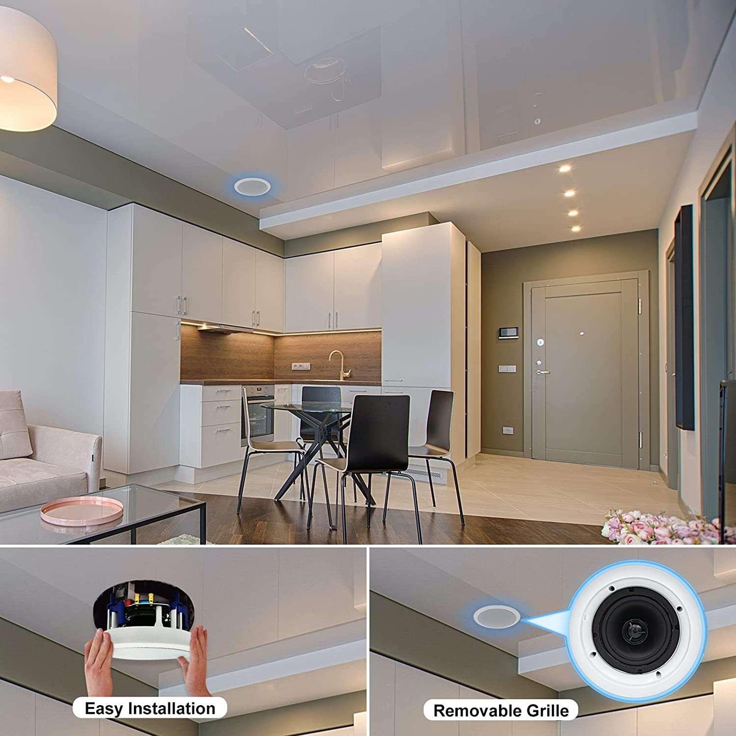 - Flush Mount Desgin:simple and easy to install on the wall/ceiling with a strong magnetic grille, including a built-in round stain-resistant speaker grille. With durable construction and materials perfect for family rooms, living rooms, bedrooms, kitchens, bathrooms and covered outdoor porches, it will provide years of lasting enjoyment.