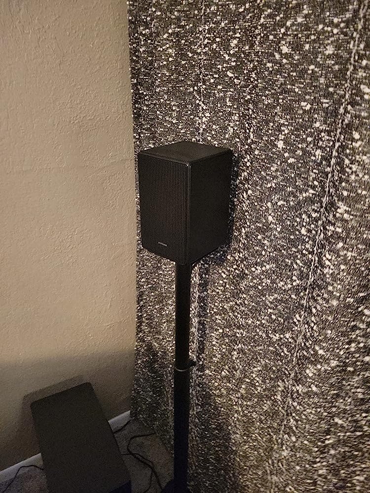 This product is easy to assemble as all the parts are labeled. Once it is up the relatively small footprint makes it perfect for the surround sound speakers in the back by the couch.