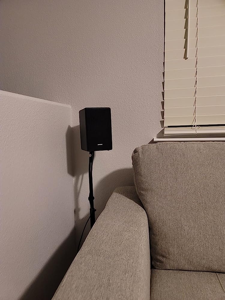 These are really nice stands for rear surround speakers. But the only way I can use them for my Samsung speakers are to mount them backwards facing away from the bend.