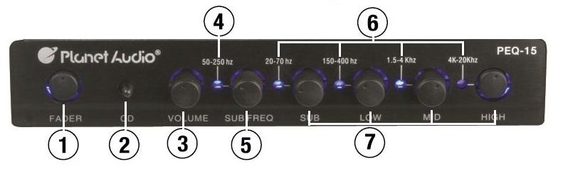 The Planet Audio PEQ15 parametric equalizer is a high-fidelity signal processor/preamplifier that allows you to control the relative levels within the audible frequency spectrum of a stereophonic system. It is intended for use in a car audio system which includes amplifiers in a signal path after the equalizer, and provides front, rear, and subwoofer low level outputs via RCA connectors.