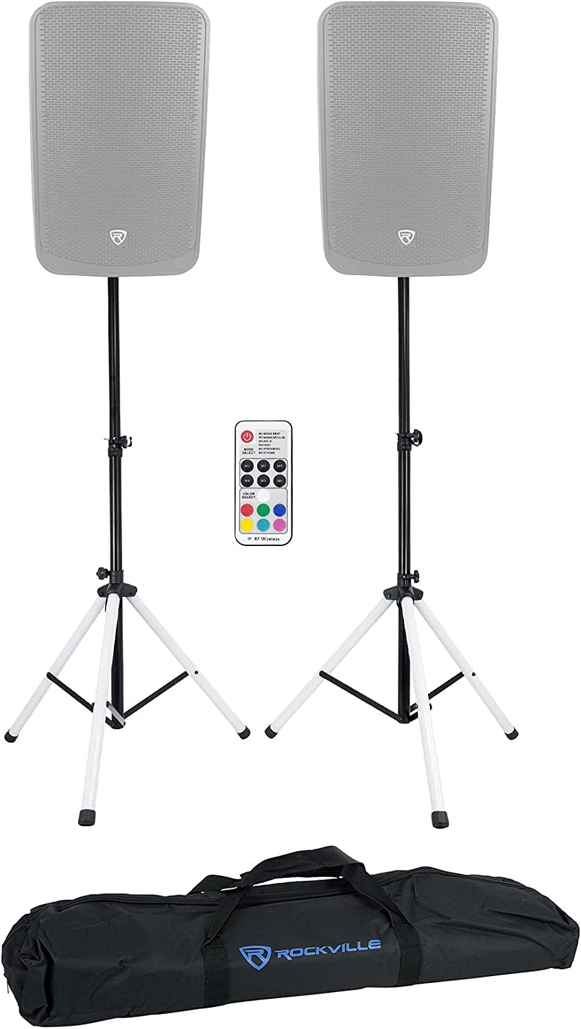 - Pair Rockville PARTY STAND LED DJ Tripod Speaker Stands+RGB Remote+Sound Activated