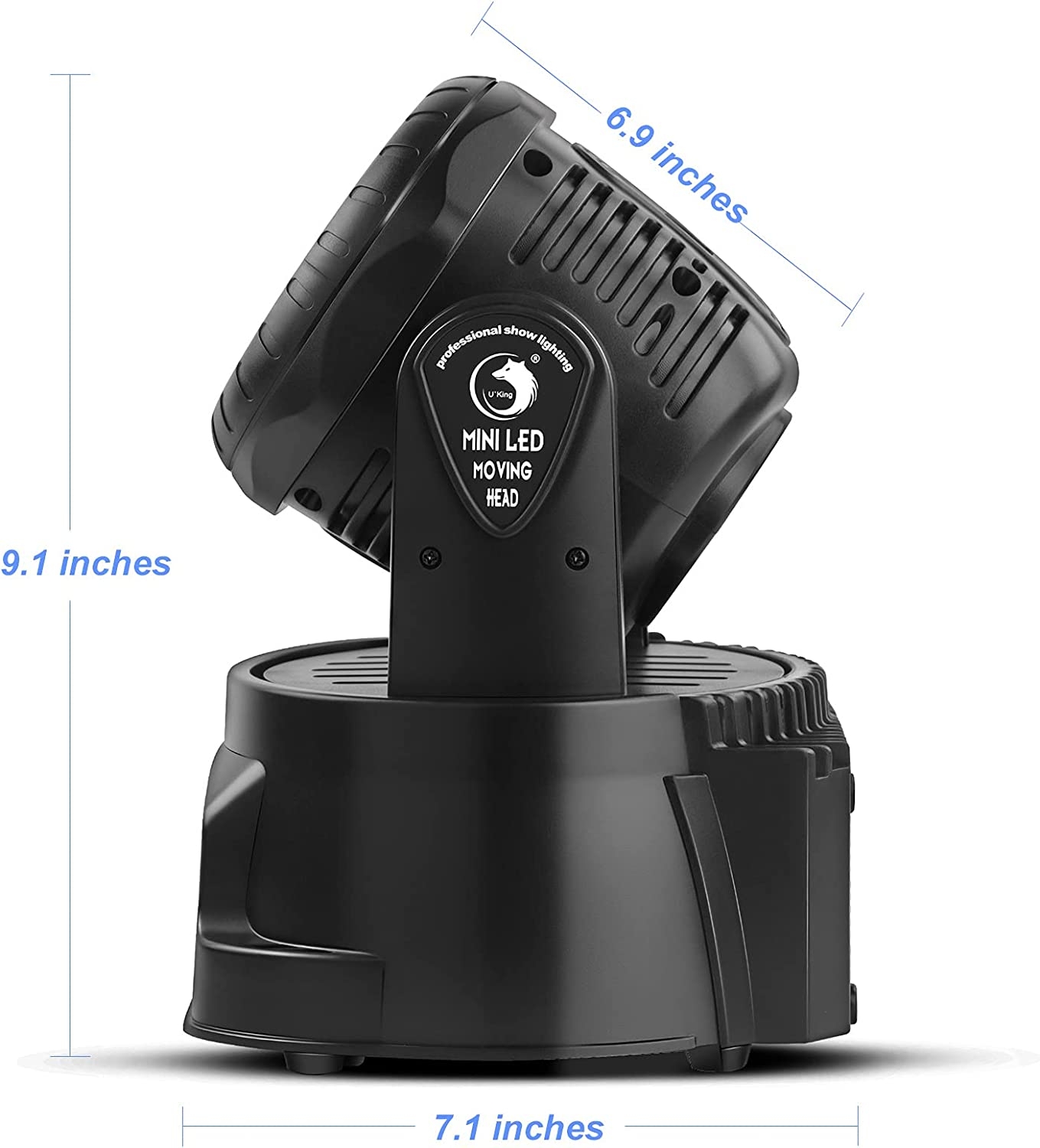 I’m planning to get a couple more. When hooked up together they can be synchronized together for a very professional lighting show. Motion, or automatic and even use the provided remote control for quick changes without having to intrude on the party. Just know that the remote doesn’t have a lot of range so being close to the main headlight if it’s been daisy chained or not is necessary. It comes with a bracket for wall mounting if it’s needed and it provides multiple ways it can be positioned. It can be installed upside down or really any angle for that matter. I’m having a blast with just one. It’s really quiet when it’s in action and after twenty to thirty minutes it was only still warm to the touch. It runs on one twenty volts and has a three prong plug for safe grounding. It’s lighter than it looks and when off spins with little resistance, that’s shows me why it only gets warm and not hot because of its low friction. The instructions were informative and easy to read and understand. It came packaged well and kept the fragile light well protected for mail travel. It was really fun learning all of its capabilities and I enjoyed setting it up. Four Stars⭐️⭐️⭐️⭐️!!!