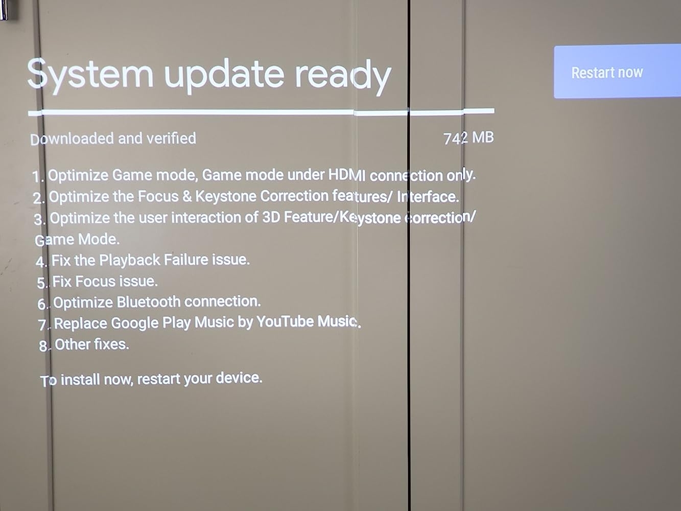 Going into this I was already aware of the issues with the Netflix inoperability for which there are some workarounds so I am hoping that they get that fixed through an Android TV upgrade? Still at 9.0.Otherwise it is a great product. Picture quality is amazingly bright and clear, just don’t bump or move it midstrwaming as the auto focus is very sensitive and will recalibrate immediately, which seemed to be more of a problem for minor movements and less so when still streaming but walking to reposition into a better location.Still has a surprisingly bright picture in the day time but obviously will wash out in direct sunlight which is expected. Compared to other portables I’ve owned there is no comparison when it comes to brightness and quality even in less then optimal lighting conditions.As far as bang for your buck, it’s on the high end of pricey but worth it if you have some extra money sitting around compared to all of the other portable short throw projectors out there.Battery life is on par with most other portables but that is to be expected with its ability to project 4k along with the normal dimming expected when running off of battery power. I myself usually travel with a backup source of power to keep it plugged in (the giant Duracell portable battery is amazing and can even start a car)The only other quirk is the way that android TV is laid out but that is not a problem related specifically to this product. I can still plug in an external phone, laptop, tablet, computer, etc to the onboard home cable. Chrome casting works great (with the exception of Netflix which is dead in the water short of running it through an external source)Solid build, decent speakers, although I would suggest a decently powered portable speaker setup that can link multiple speakers or even a powered wired speaker setup if you have power on site.9/10 would recommend but the quirks and the price are not for the faint of heart