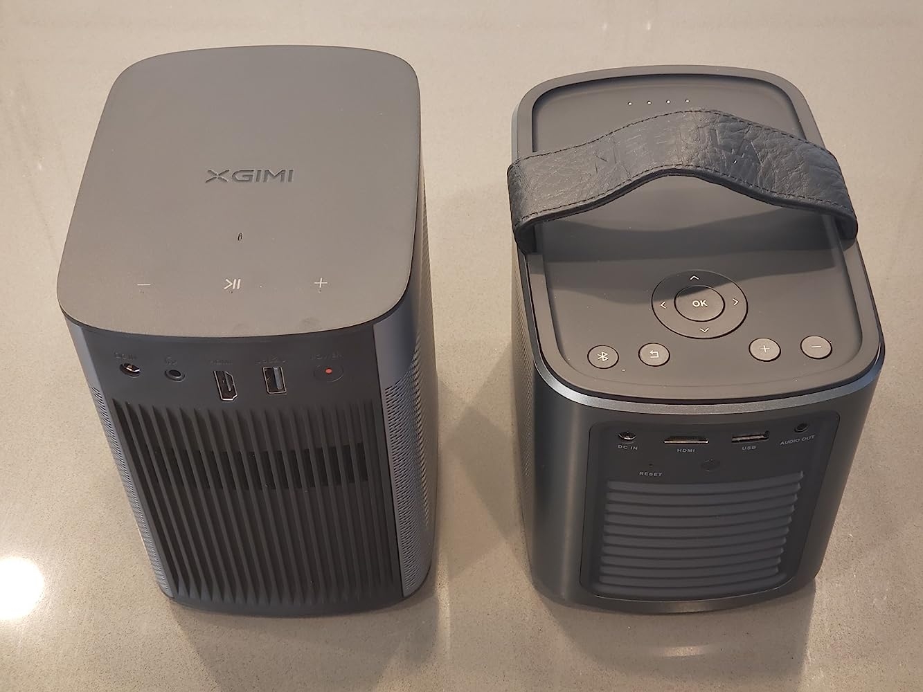 Finding good, portable projectors for small-group, outdoor movie nights has been a disappointing quest over the last, two years. From $60 to $300 devices, each had much to like but also left a lot still to be desired. There were the big ones that output excellent, bright images but were more geared towards the home or office with HDMI/VGA connectors, small ones that were very portable but lacked the brightness and sharpness, and more recently, minis that could operate off a battery but also sacrificed image quality, input options, and good sound. I eventually did find one that checked off almost every one of my requirements, and that was the Anker Nebula Mars 2 Pro. Later on, I also purchased the Xgimi Halo because of its native 1080p display resolution. How did it compare to the Anker?This review will also go over some projection basics that helped me decide what was right for our family.MANYBOX PROJECTOR & RAVPOWER 80W AC POWERAmong all the projectors I had tested over the years, last year’s ManyBox V501 was our favorite: it was small, decently bright, did not draw too much energy from a portable battery station, but suffered from speakers that were tinny and only adequately loud for a small room setting. Yet, its number of input options, including USB and microSD, won my heart because that meant not having to bring along a laptop to play a movie from. This year’s summer had put that to the test: we played a movie off the side of my car while getting ready for backpacking the Kings Canyon National Park wilderness the following day. It was connected to a RAVPower 80W AC Power Bank, lasted nearly two hours, and made for a very, very happy son!XGIMI HALO vs ANKER NEBULA MARS 2 PROThe Xgimi claims to have a native 1080p display resolution which, in theory, should result in crisp text. Indeed it does. I was able to read small fonts in sharp detail as compared to the Anker. I did not find a noticeable difference in brightness between both projectors despite Xgimi having 300 more ANSI lumens than its competitor. What did stand out for me, however, is that despite Xgimi having two 5W Harmon Kardon speakers that gave excellent sound with heart-thumping bass, they did not sound as good and loud as Anker’s two 10W ones. Size-wise, both projectors are roughly the same with Xgimi being taller, but more shallow. Autofocus worked identically as well. I was disappointed that the Xgimi does not have a lens cover to protect it against dust and scratches, and its touch controls are more limited than Anker’s physical ones that also included a directional pad and Return key. In essence, most of the navigation on the Xgimi is done through its fancier remote (with mouse-like feature), and it does so with good responsiveness as I navigated around its Google Android TV 9.0 interface. Anker’s was using an outdated Android 7.1 operating system with very clunky, limited support for Google Play Store apps (if upgraded to a Beta version of Android by contacting their technical support.) Xgimi wins by a mile in this area with its more modern, Google Android TV that has Google’s full blessing with access to the 5000+ apps found in the Google Play store. Battery lasted about the same with both products and were able to play a full Pixar movie with power to spare. Both projectors did not support the latest version of Netflix, and you would be forced to use an older version provided by their respective manufacturers instead.Ultimately, it was a big tossup between both projectors. Is the Xgimi’s $170 higher price tag worth it? Yes, if you want crisp details with its 1080p display resolution, a modern Android TV interface with Google Play Store app support, better material quality and feel, and a more premium, overall experience. No, if you want louder speakers, hardware controls to navigate the projector without requiring a remote, built-in cover to protect its lens, and don’t care about having Google Play Store apps installed. Ultimately, I chose to keep my Anker for traveling, but the Xgimi for business presentations where I wanted to impress my clients.Let’s look in more detail what I liked and disliked about the Xgimi Halo.WHAT’S GOOD? WHAT’S BAD?PROS- Design: Unique and premium-looking– Portable and compact- Built-in battery– Kept its charge well (stored away at 100% and remained at that after 2 weeks)- DLP technology and LED light source with a rating of up to 30,000 hours– Color reproduction is very good- 800 ANSI lumens produces enough brightness to cover a large room with low, ambient light– See TIPS section for details on lumens, lux, and ANSI lumens- Native screen resolution of 1080p for crisp images and text (1920×1080)- Projection size rated for a diagonal 30″-150″– Found about 90″-100″ (at 8′-10′ distance) to be the sweet spot for a fully dark room- Two 5W speakers are decently loud, full, and clear with strong bass– Not a surprise considering that Harmon Kardon makes excellent speakers– Projector can be used as a Bluetooth 4.0 speaker (A2DP supported)- Sharp autofocus and keystone for limited skew correction. Triggered by moving the projector- WiFi for direct connection to the Internet, local network, and supported screen mirroring– Supports 2.4 GHz and 5 GHz bands. Former is slower than 5 GHz but has larger signal coverage and better compatibility with older devices- Android TV 9.0 OS with full Google Play Store support– Netflix, YouTube, Amazon Prime Video, and Plex available– APK files can be sideloaded- Built-in touch controls at top, though only for Volume Up/Down, Start/Pause- Remote control with mouse functionality– Some apps do not support directional movement and will require the use of the mouse- Minimal fan noise- Projection modes (configured via Settings)– Front: like in classrooms– Rear: like rear projection TVs and digital signs– Front Ceiling / Rear CeilingCONS- Pricey- Autofocus is slow though crisp once locked– Gets triggered